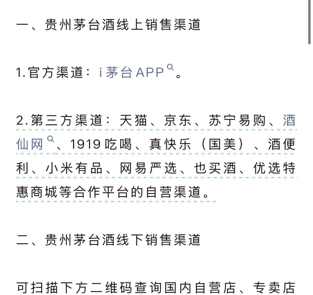10月14日,贵州茅台通过官方微信公众号发布渠说念指示,提醒失掉者剿袭官方、正规渠说念购酒。记者提神到,贵州茅台将天猫、京东、苏宁易购等十余家调解平台的自营渠说念阐明为正规购买阶梯,但拼多多、淘宝、好意思团三个主流平台不包括在内。