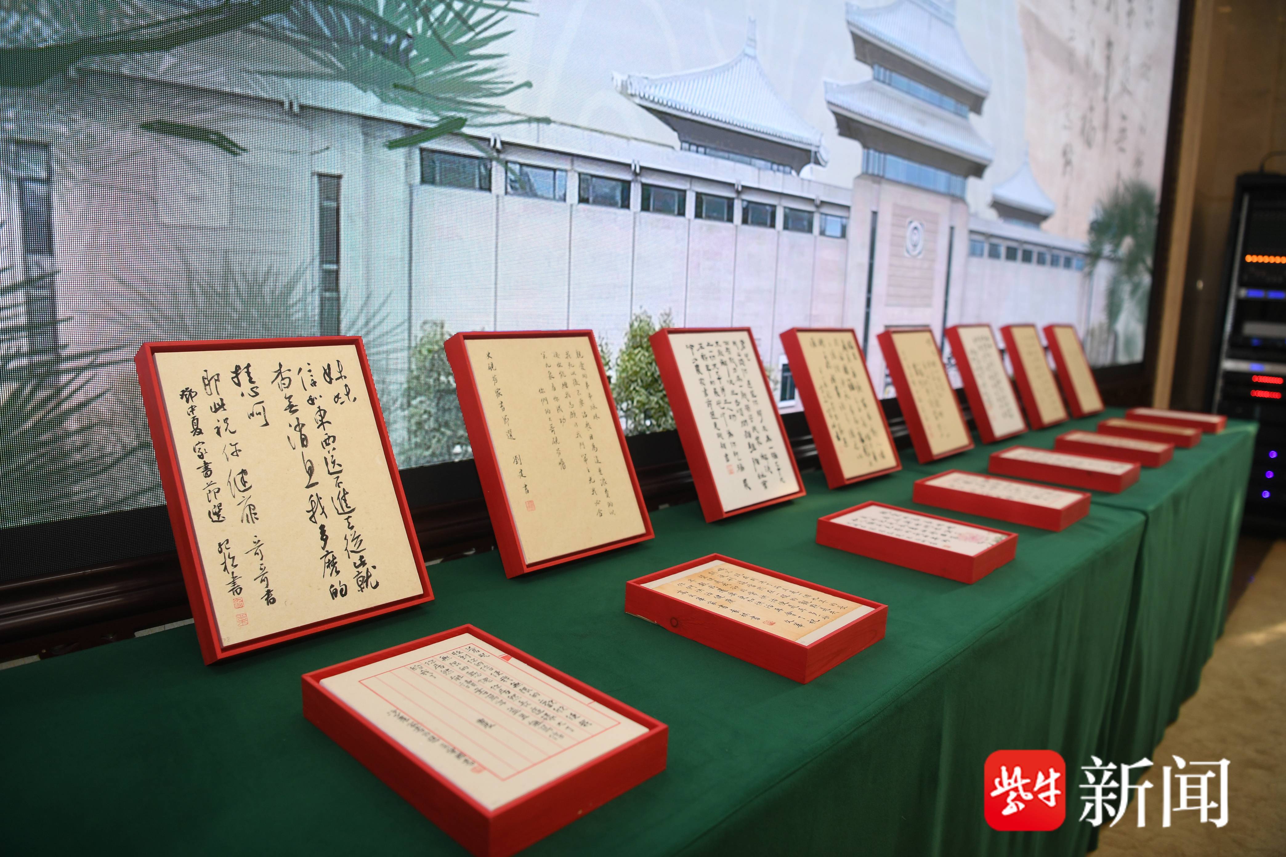 扬子晚报网11月22日讯(记者 徐昇)11月22日,江苏省书道院、南京雨花台义士陵寝处罚局、雨花台区文化和旅游局共同主持“翻新先辈的家信”——江苏省书道院百件书道作品捐赠行径,在南京雨花台义士操心馆举行。